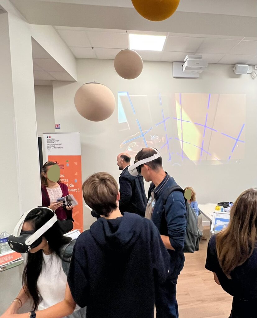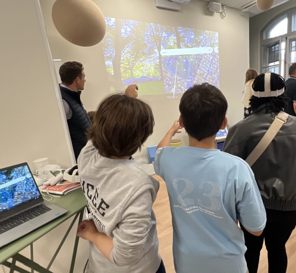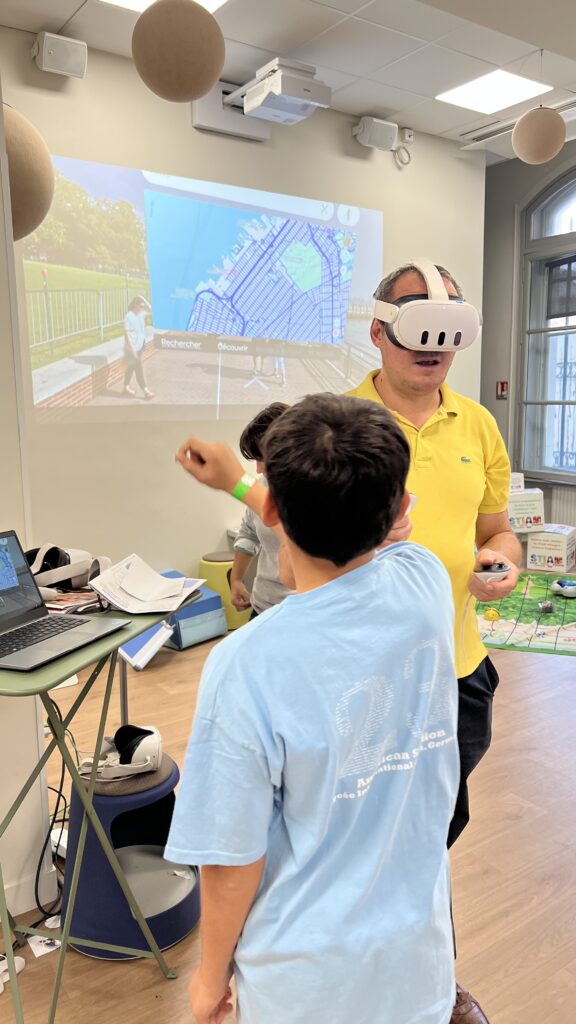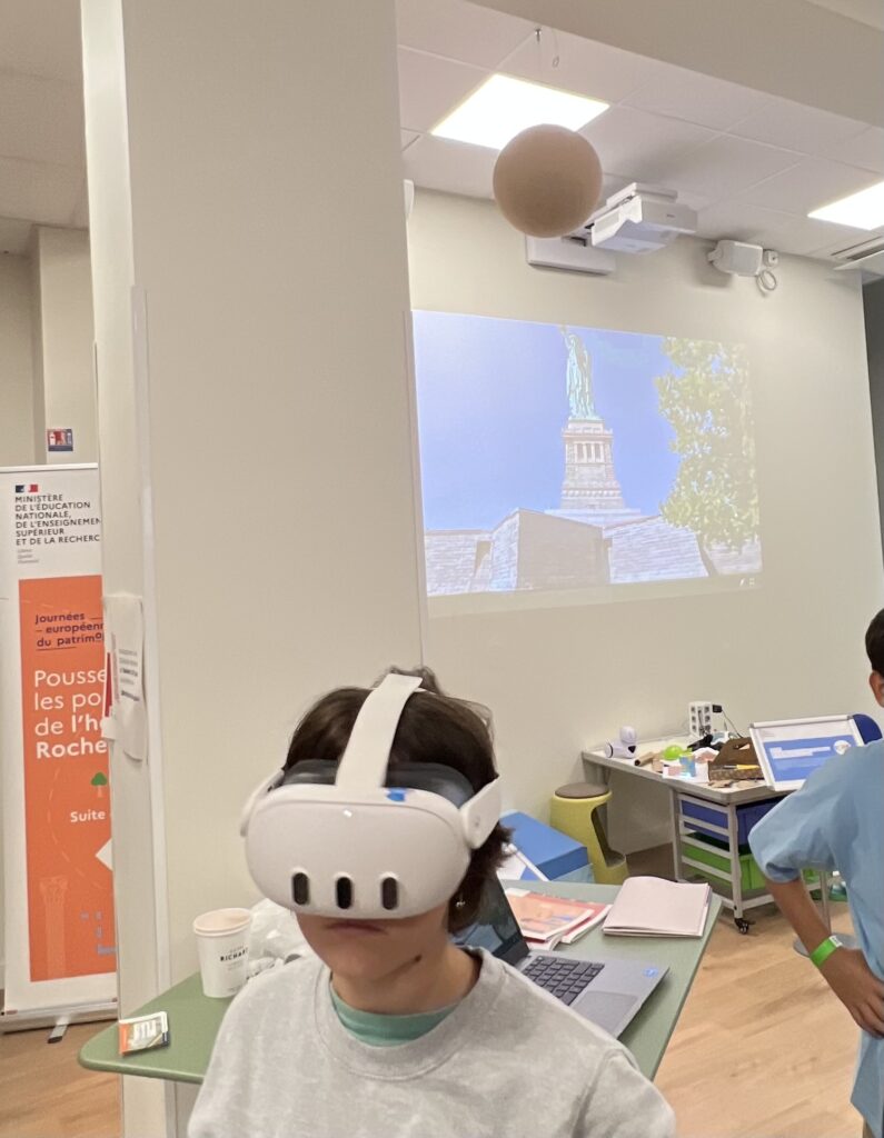 - Le dimanche, des élèves de 4ᵉ ont proposé une exploration des paysages urbains de New York et Détroit. Grâce aux casques de réalité virtuelle et à l’application Wander, ils ont permis une immersion totale dans la ville, renforçant l’observation, le vocabulaire et la compréhension des espaces urbains.