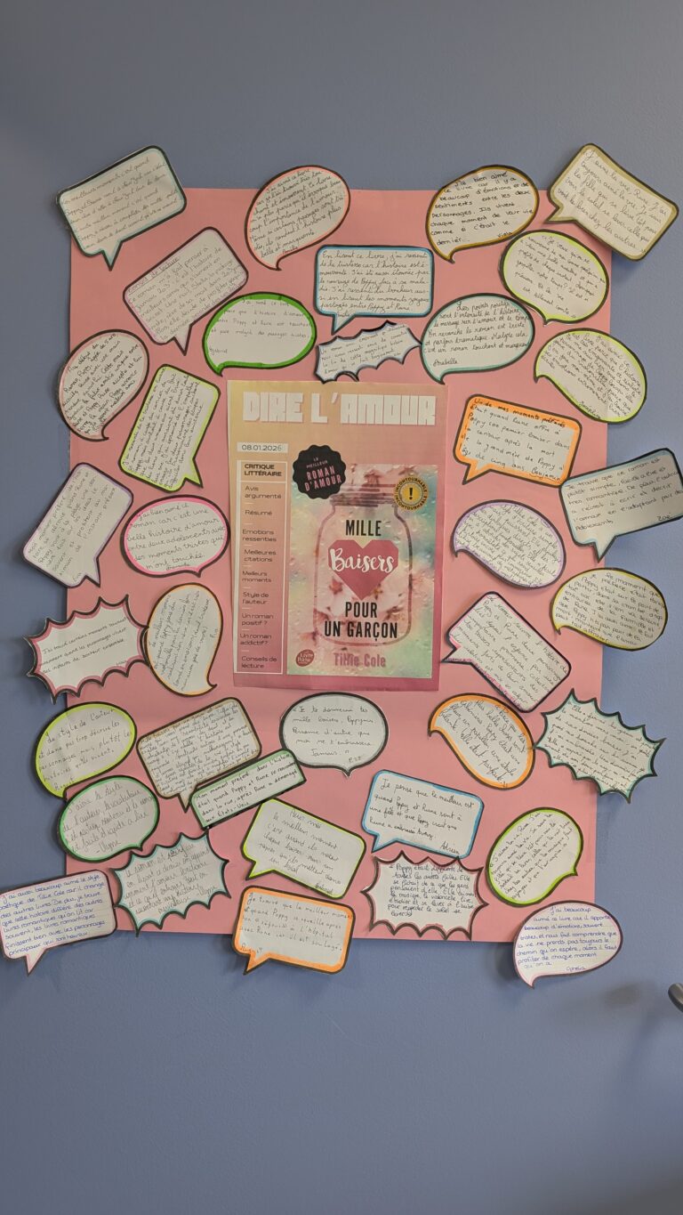 Voici un petit aperçu de critiques littéraires faites par des élèves de Mme Restout à propos du livre Mille baisers pour un garçon de Tillie Cole.